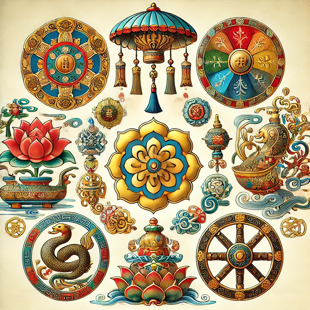 팔길상은 여덟 가지 길한 상징을 의미합니다. 보개(寶蓋), 금어(金魚), 보병(寶甁), 연화(蓮花), 법륜(法輪), 해라(海螺), 반장(盤長), 승리의 깃발 등으로 구성되며, 각각 불교의 중요한 가르침을 상징합니다. (이것은 조금 어렵네요.) 다시 간단히 설명하자면 다음과 같습니다.
